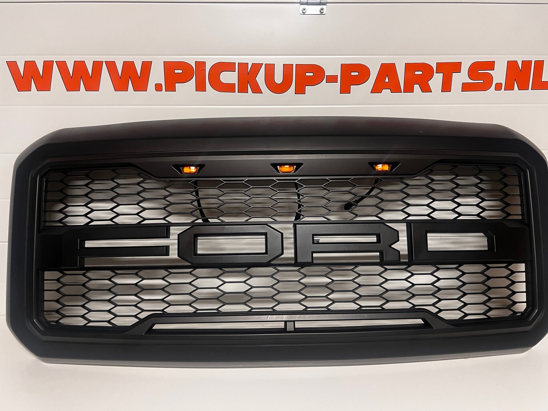Transformeer het uiterlijk van je Ford F250/F350 met onze indrukwekkende Raptor grill inclusief levendige amberkleurige LED-verlichting. Deze hoogwaardige grill is ontworpen om een krachtige uitstraling toe te voegen aan je voertuig, terwijl de amberkleurige LED's niet alleen een stijlvolle touch bieden, maar ook zorgen voor een verhoogde zichtbaarheid, vooral bij slechte weersomstandigheden. Vervaardigd met oog voor detail en duurzaamheid, past deze grill perfect en naadloos op je Ford F250/F350. Verhoog de uitstraling en functionaliteit van je voertuig met deze Raptor grill en laat je Ford opvallen als nooit tevoren
